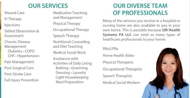 IJN Health Systems is a locally owned Skilled Home Health agency committed to providing families in our community with the best in-home care services. Our commitment to our patients and families is very simple: By helping our patients or loved ones continue living at home, we help you find peace of mind by providing compassionate, excellent services.